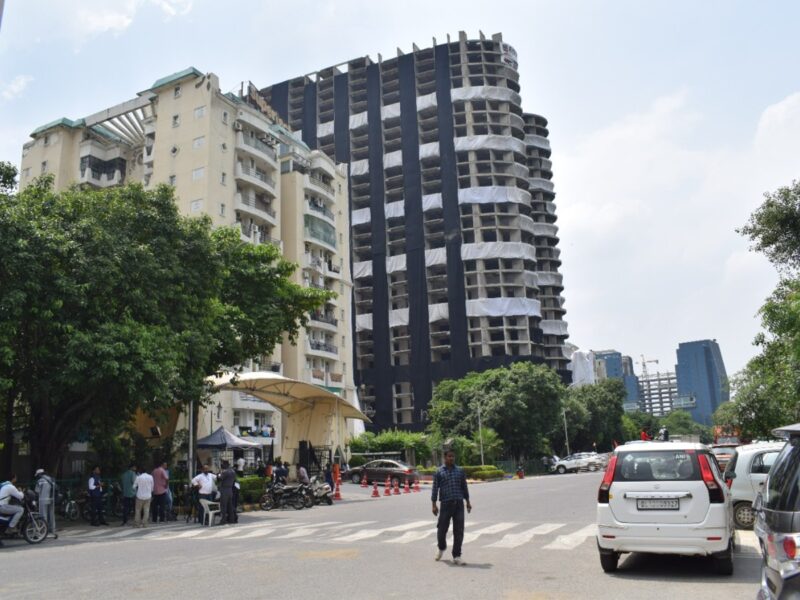 At the time of demolition of the Supertech Twin Towers, the cloud of dust is likely to reach 300 metres above ground level and may take 10-15 minutes to settle.
