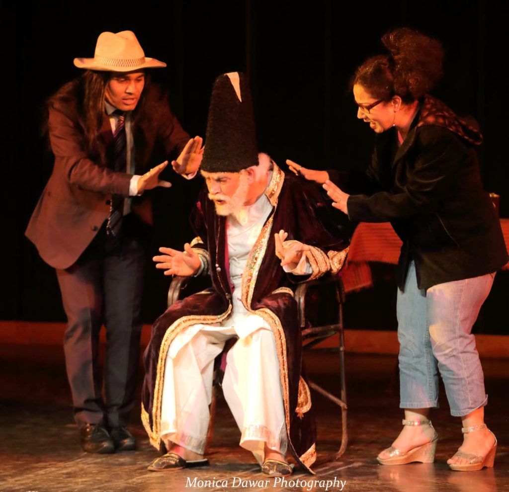 The play features some of the prominent actors of the country; including Rahul Paswan, Aarifa Noori, Aman Jha and M Sayeed Alam with the last in the list playing the all important role of Mirza Ghalib etc. Reputed for his penchant for humorous historical and historic plays, Alam is also the writer and director of this play.