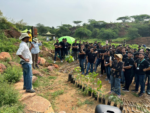 Although you cannot see them from the road as big — old Jamun trees block your view — there are some floors of a super luxury apartment block visible.