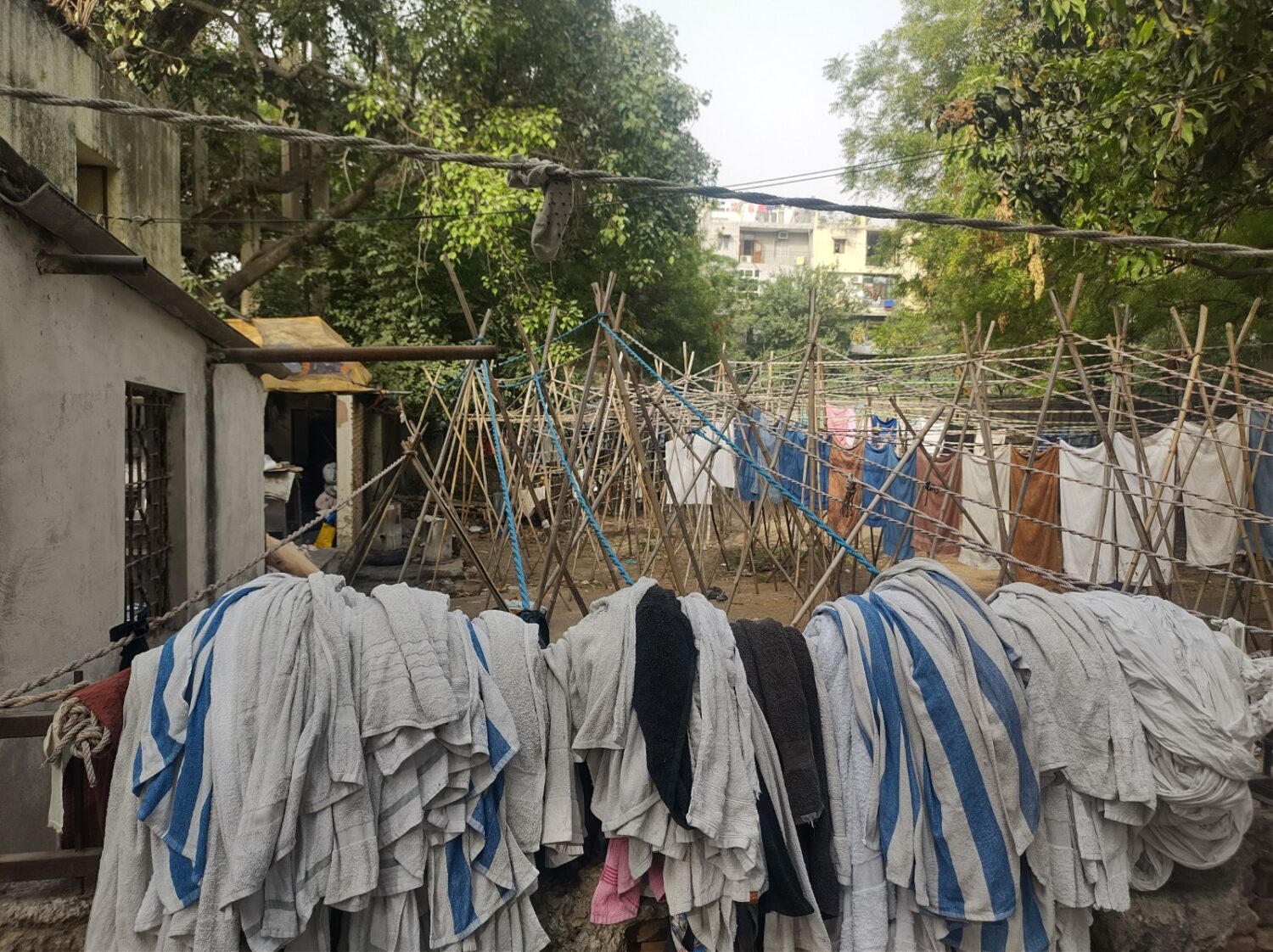 The dhobi ghats cater to hotels, gyms, beauty parlours, salons, event management companies and individual customers. Long clotheslines define the boundaries of the dhobi ghat as they optimise time and space.