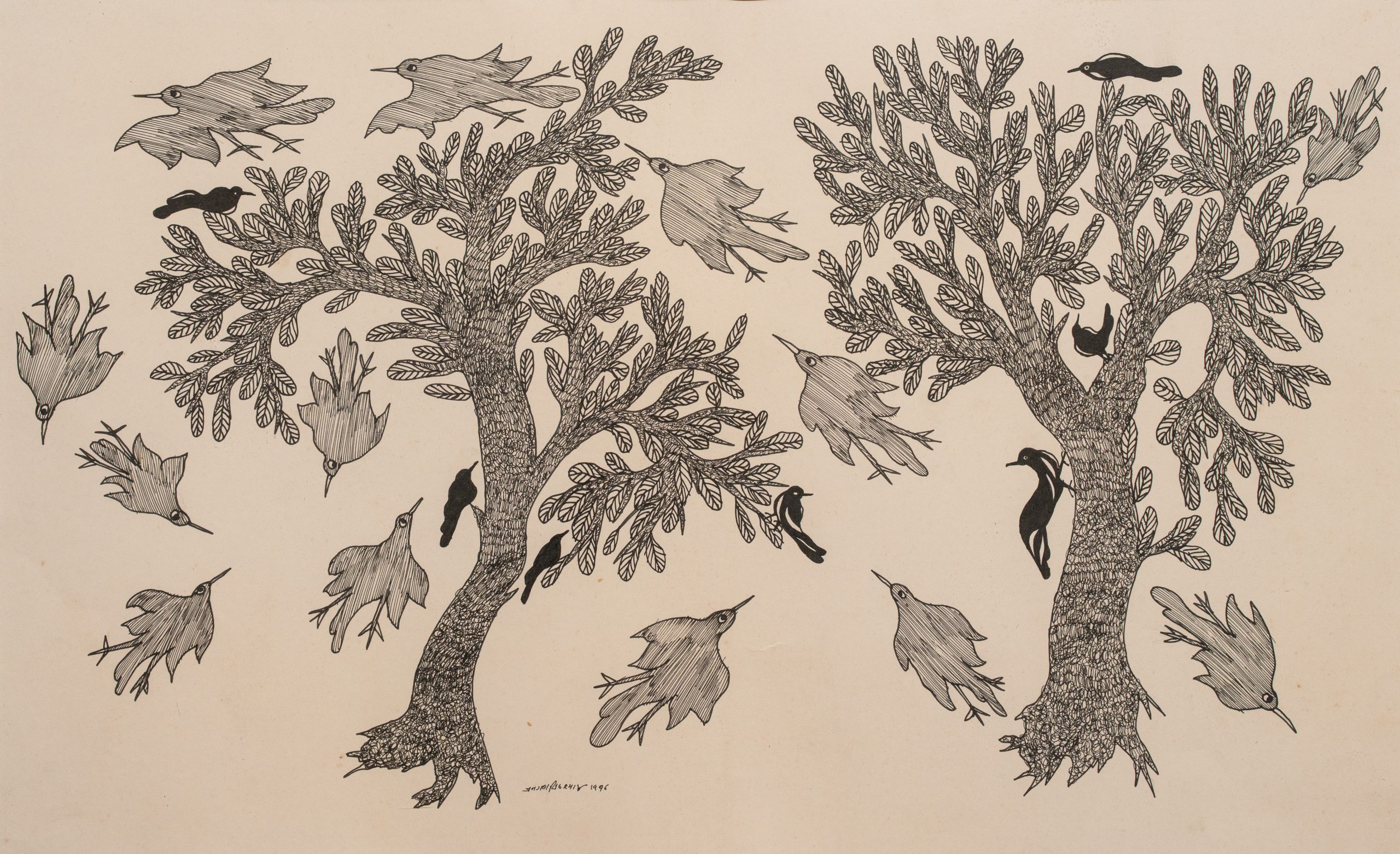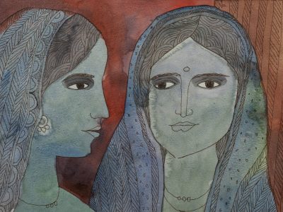The emphasis on paper, she noted, is equally deliberate. “Paper as a medium is quite dynamic. It’s fragile and perishable but at the same time has memory and absorbs gestures,” she said. “When we thought of focusing on how the postcolonial turmoils of India affected the psychological landscape, instead of large-scale canvases we turned to the more intimate yet profound medium of paper.”