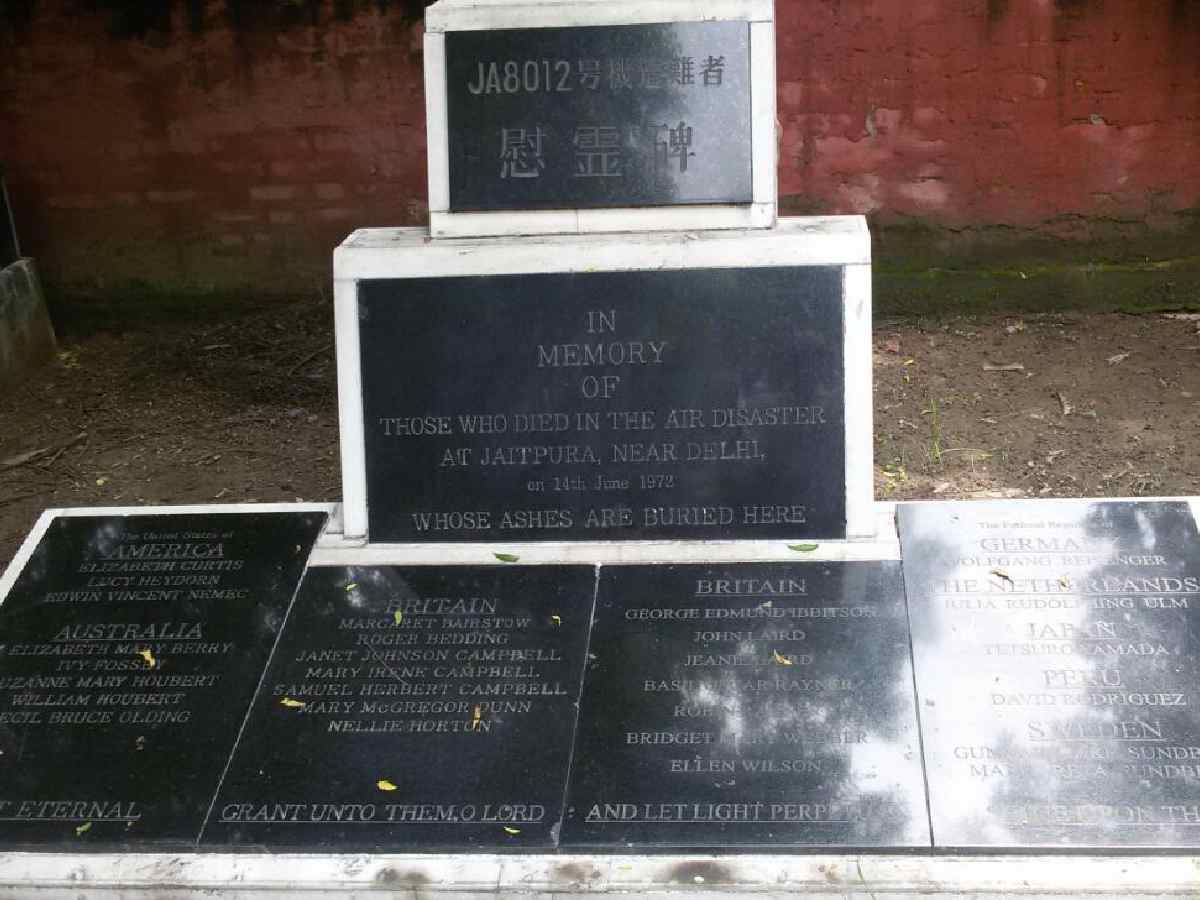 This modest yet poignant grave commemorates the 86 passengers who perished in the tragic crash of Japan Air Lines Flight 471 near Jaitpur village in South Delhi. The ill-fated flight, carrying mostly passengers from the United States, Britain, Australia, Brazil, and Japan, crashed just short of Palam Airport. Old media reports also note that four people on the ground lost their lives—a grim parallel to the recent Air India crash in Ahmedabad, where ground casualties were similarly reported.
