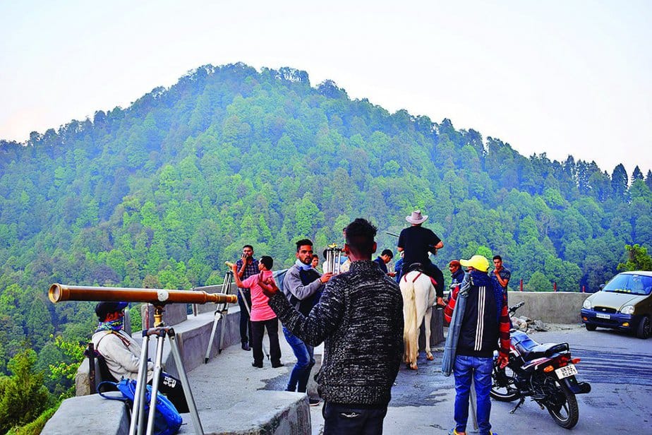 I cross a jammed patch called Himalaya Darshan which is a popular tourist spot. Tourists are busy peering through telescopes to see the well-known China or Cheena peak, the tal and other interesting spots. But it’s a misty day and the mountains are hidden. There is horse riding too and tea and Maggie stalls. Watch five spots for R30, a vendor says. But my eyes catch the green signboard with the picture of a bird and Naina Devi Himlayan Bird Conservation Reserve and the quest to find this bird takes me to the edge of the mountain. I thank this signboard later and the many I see on this drive.