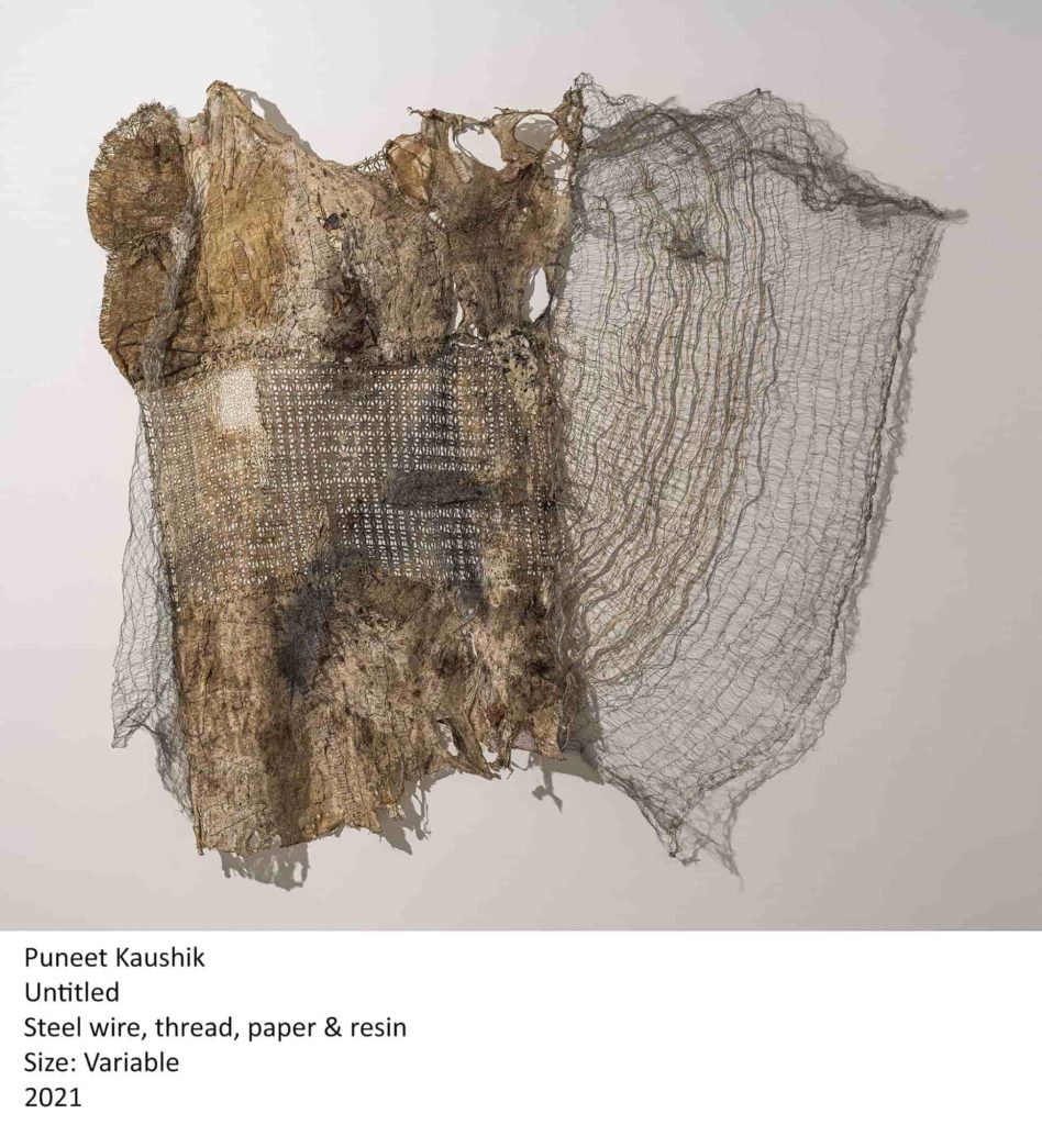 “The choice of abstract subjects, traditional craft techniques and contemporary treatment of media signal unconventionality in Kaushik’s refusal to be bound by the existing prosaic parameters of art reception and the restrictive notions of contemporary art practice. To him, doing nothing or merely tweaking the status quo means certain death for the arts. His layered cultural enquiries on paper, wire and fibre strive to bring forth histories that challenge existing notions on gender, sexuality, stereotypes, violence and moral values,” reads the curatorial note.