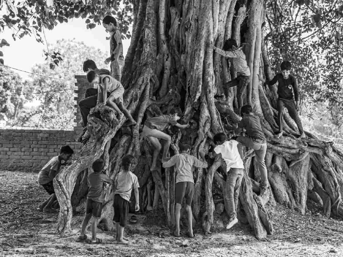 In the Bachpan series, Roy documents children at play in places such as Odisha, Jharkhand, Chhattisgarh, Maharashtra, Rajasthan, Delhi and West Bengal. Using found objects and inventive thinking, the children create their own games and toys—offering a raw and uplifting view of childhood shaped by community and creativity.