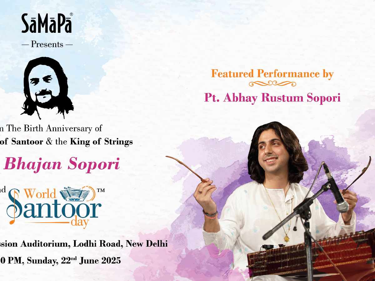 The Sopori Academy of Music and Performing Arts (SaMaPa) will host the second edition of World Santoor Day on Sunday, June 22, at the Chinmaya Mission Auditorium on Lodhi Road, Delhi. The event will begin at 5:30 PM and continue till 10:00 PM. Entry is free and open to all on a first-come, first-served basis.