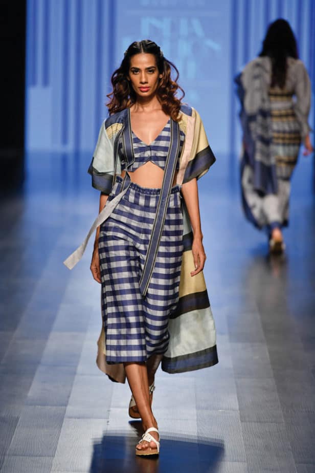 Amid all this hustle bustle, we got acquainted with Amita Gupta’s spring summer 2019 collection that featured a textile called Chanderi-denim. This unique blend of materials and sensibilities was an eye-catcher as it reflected a never seen before trend in the Indian textile design scene.