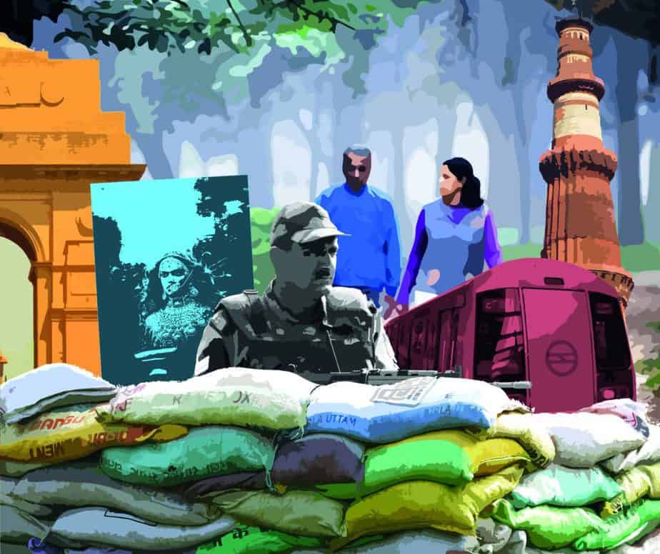 A denizen of Delhi, irrespective of his or her social status, cannot miss one fundamental fact of existence: the ominous presence of security forces with guns and rifles. The sand-bunkers are all- pervasive, with gun jutting out, sniper looking fixedly at the people for a potential miscreant whether it’s a market, Metro or railway station, university campus, mall, main road or tourist spot.