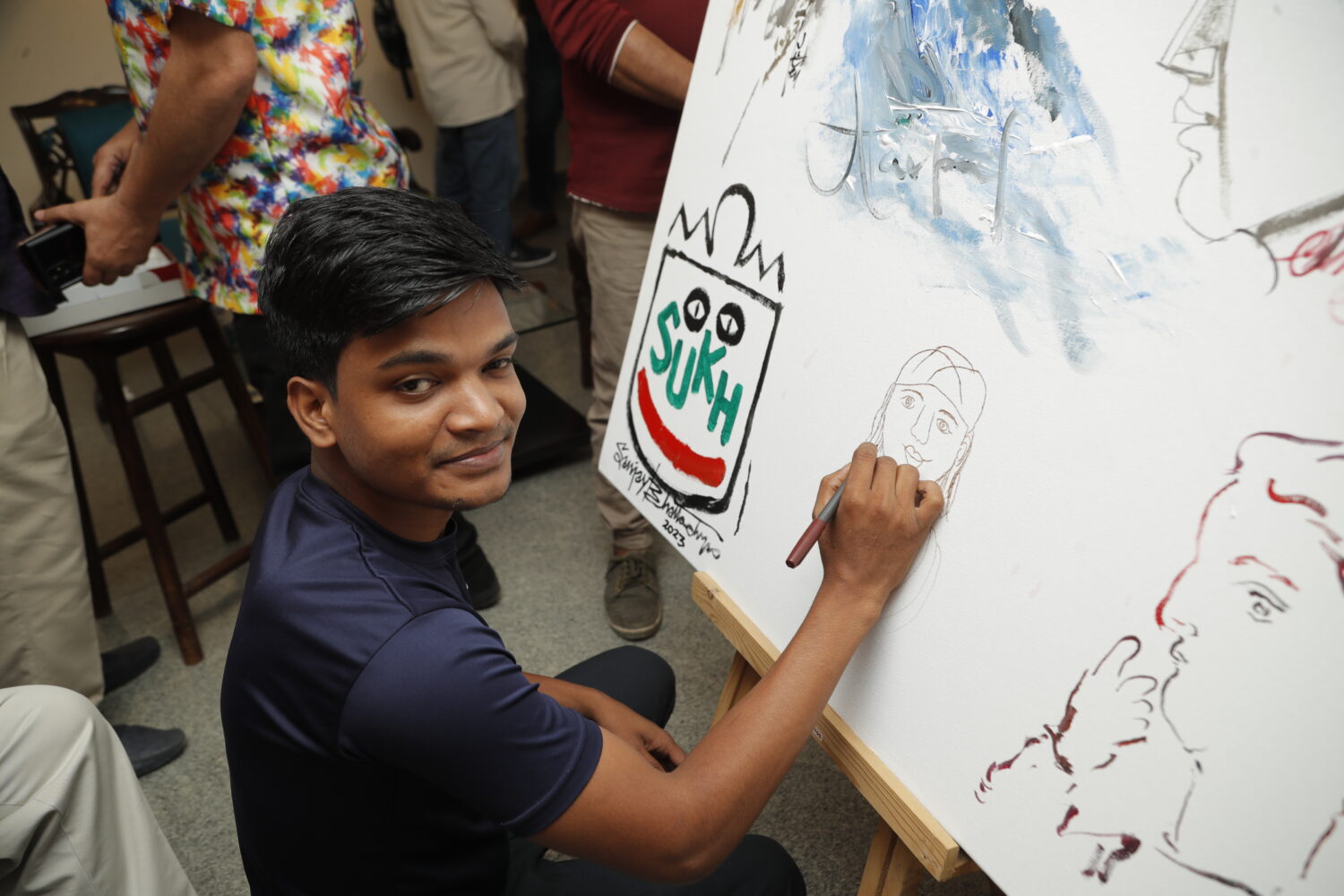 A: Yes, of course, as we all know that cooking is also a form of art and I gained a lot of positivity from there. So definitely, cooking influenced me to be a painter. There is a similarity between the two for me as both these forms of art give me immense pleasure and positivity. When I started as a cook, I never thought that this would be an opportunity I would get and still I am not thinking much about it. It is just happening. So both of them give me spirit to work and whatever difficulty comes in front of me I will overcome it with help of these two art forms.