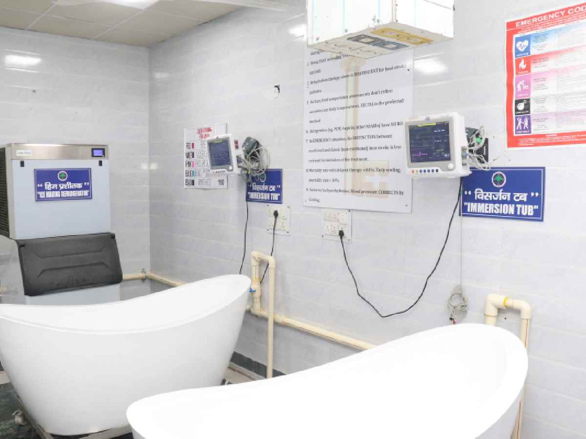 To counter this, the hospital employs an immersion cooling tub filled with nearly 50 kilograms of ice, maintained between 1°C and 3°C. Patients are submerged for approximately 25 minutes to rapidly reduce body temperature. RML also has its own ice manufacturing unit to ensure constant supply.