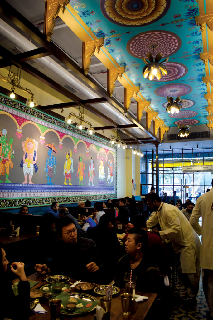 While the dishes satiate hunger pangs, the colourful interiors bring alive the feel of the southern region. The interiors are inspired by the Lord Padmanabhaswamy’s temple in Kerala and the Goddess Meenakshi’s temple in Madurai. The extensive use of lotus signifies ‘creation’, for that is what ‘padmanabham’ means—the lotus that sprung from the lord’s navel. Kalamkari paintings and mandala art adorning the interiors are also quite breathtaking.