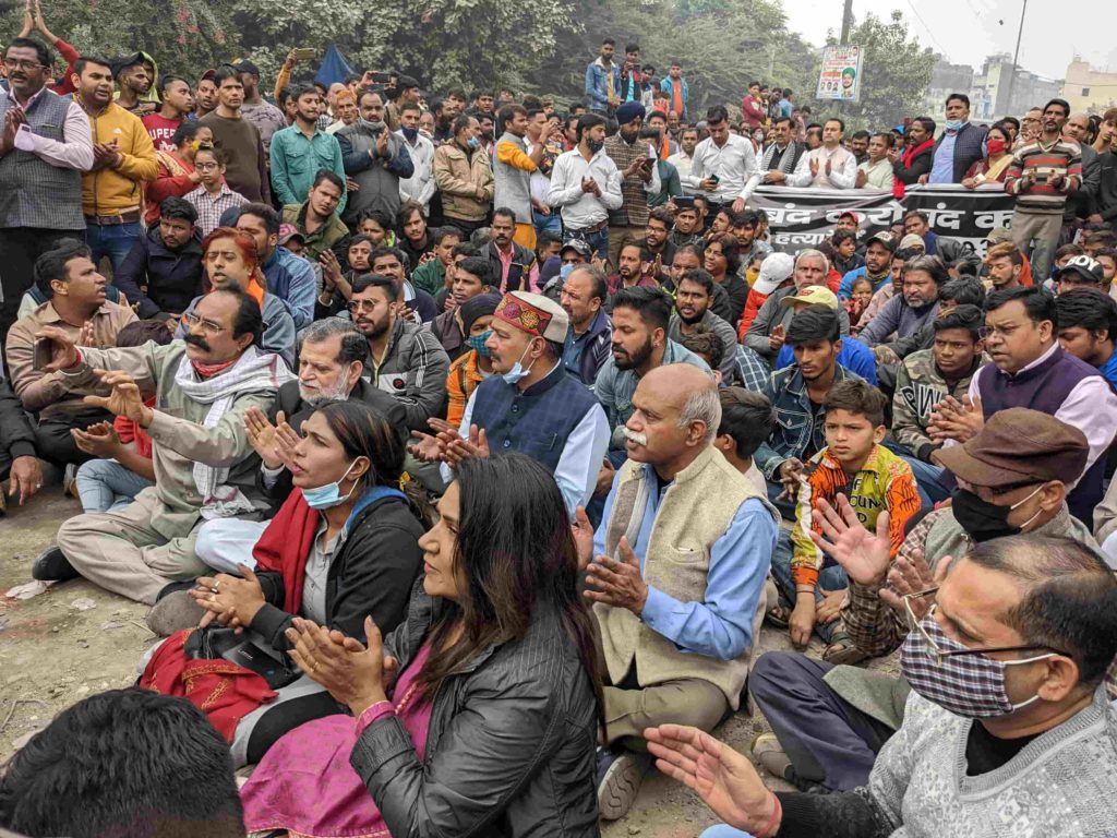 Around 1:00 PM hundreds of people associated with right-wing groups started gathering near T.C camp area chanting the Hanuman Chalisa, slogans were also raised at the gathering, “Jaikara veer bajrangi har har Mahadev”, “Jai Shri Ram”, “Bharat Mata ki Jai Ho”, Gau Mata ki jai ho”, “Ganga Mata ki jai ho”, “Ram Janmabhoomi ki Jai ho”, “Krishna Janmabhoomi ki Jai ho”, “Gau Hatya band ho”, “Dharmatram band ho” and “Bharat akhand ho”.
