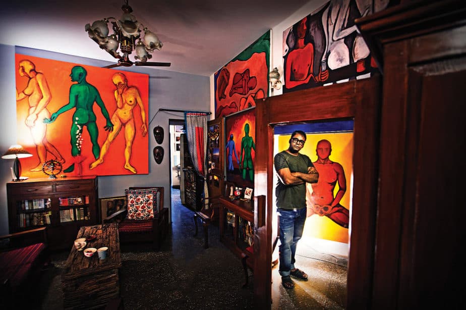In my home, I have tried to preserve an element of fluidity by not defining rooms. There’s no one place to do a specific thing, with the notable exception of bathroom and kitchen. There are phases when I spend most of the time in a room, which on other occasions, I won’t even enter for months. The walls are adorned with paintings in a way that each wall seems to belong to a different room.