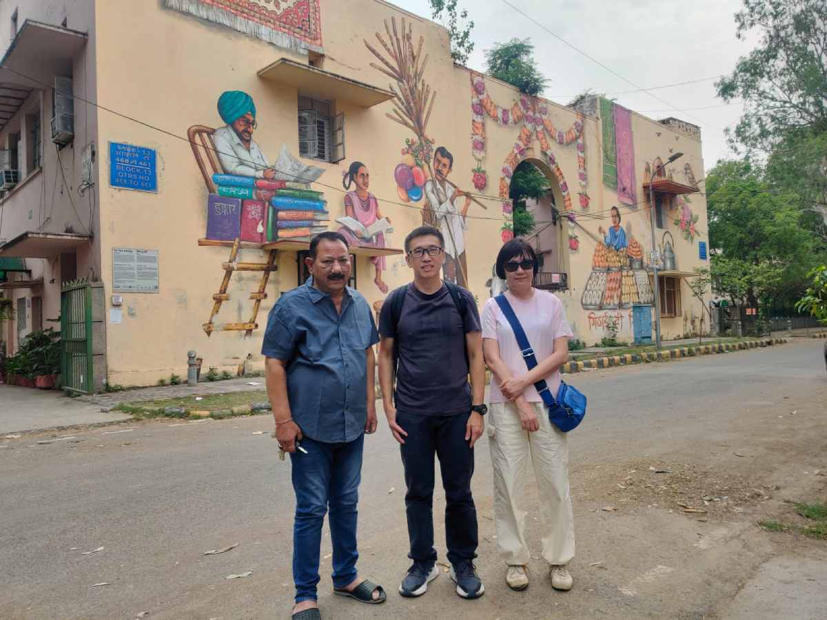 Yip, 56, is a renowned muralist from Singapore. Originally an accountant, his art often depicts scenes of yesteryear, heritage, and everyday life. This visit marked his first return to Lodhi Colony since 2019, and he was accompanied by his wife. The couple headed straight to the home of Anil Negi, a Lodhi Colony resident whom Yip had befriended while painting the area’s walls.