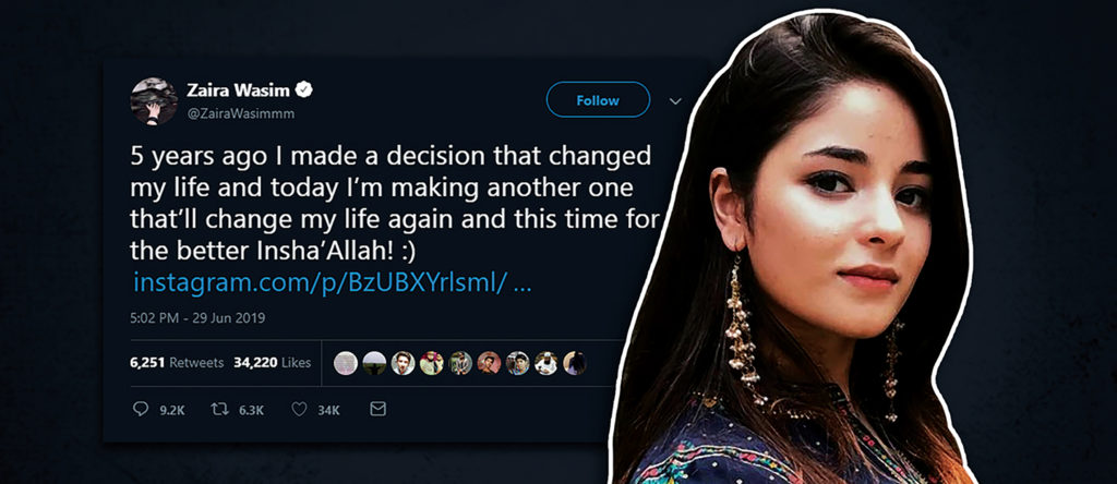 Zaira Wasim, the young superstar from Kashmir, has been in the news for a while now. Her letter on why she left cinema and acting is a reflection of a deep surrender that a young woman made towards her faith (or society?). Let it be outrightly clear, that her decision should be supported univocally, by one and all. But since she wrote a public letter—for India’s one billion people to read—it is only obvious that she chose a dialogue. In a free society, propagation of your ideas will and should generate scrutiny, and counter ideas, none of which should necessarily be seen as harassment.