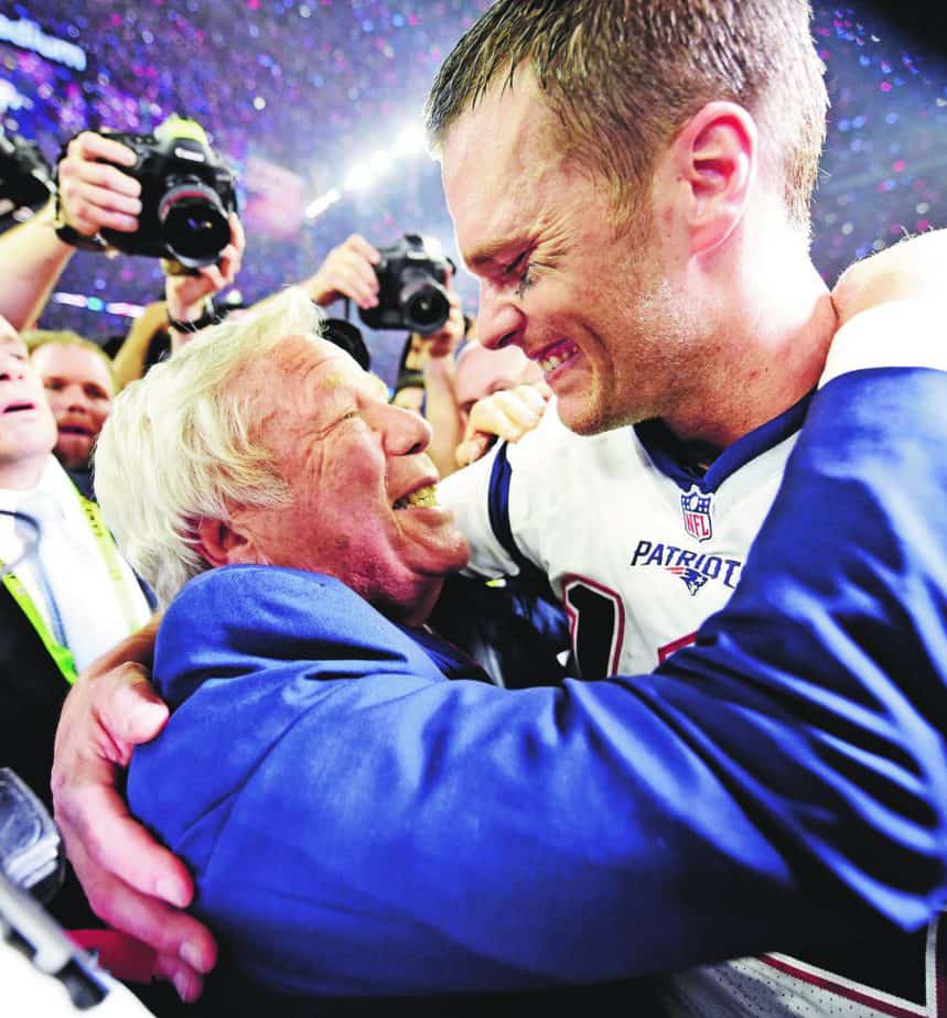 If the on-field narrative of the Super Bowl was juicy, the off-field and wider political drama was juicier. The Patriots were cast, fairly or otherwise, as the team backed by Trump. Head coach Belichick wrote a letter to the president after his election victory, and owner Kraft held regular private meetings with the latter. Brady, of course, was the most vocal of the trio. During the Republican primaries, even before the face-off between Trump and Hillary Clinton, he said that “it would be great” if his friend and golfing buddy won the White House.