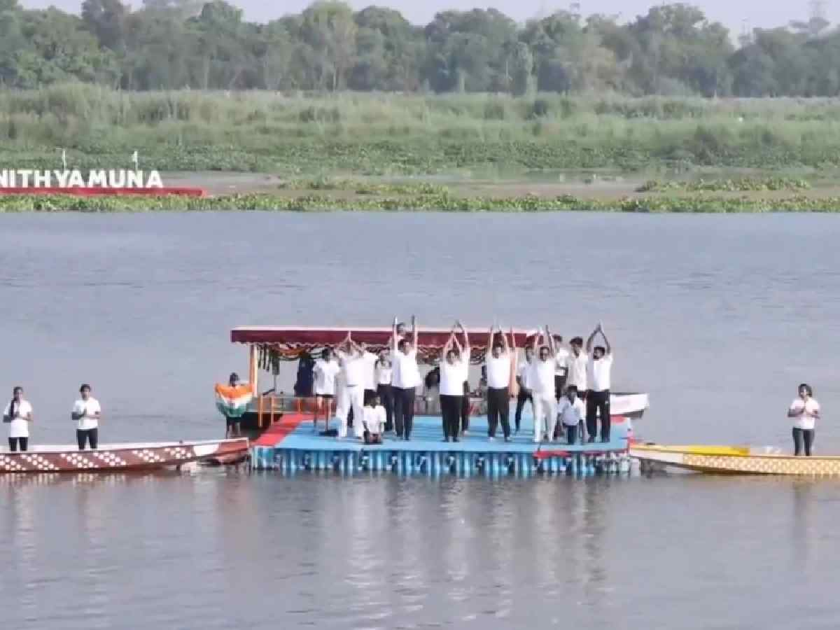 International Day of Yoga: Delhi CM performs yoga on banks of Yamuna